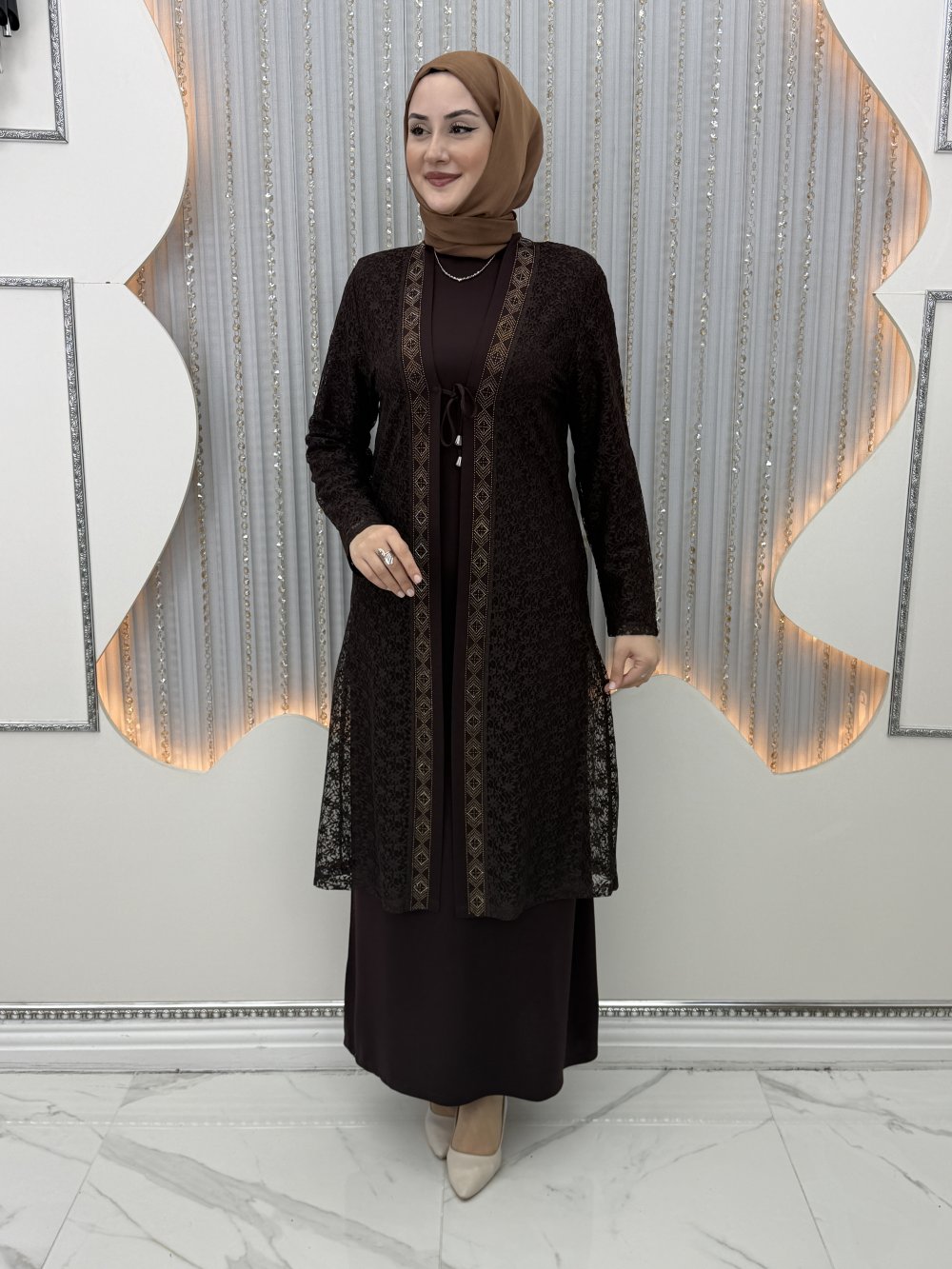 Serin Elbiseli Hırka Kahverengi