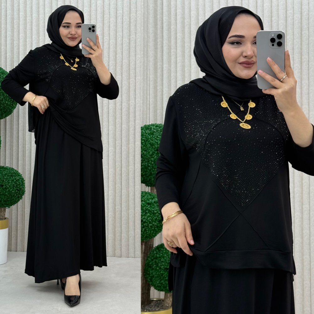 Şermin Etekli Takım Siyah