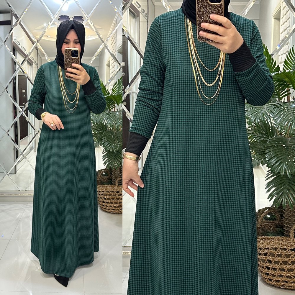 Sezay elbise penye-triko kumaş zümrüt