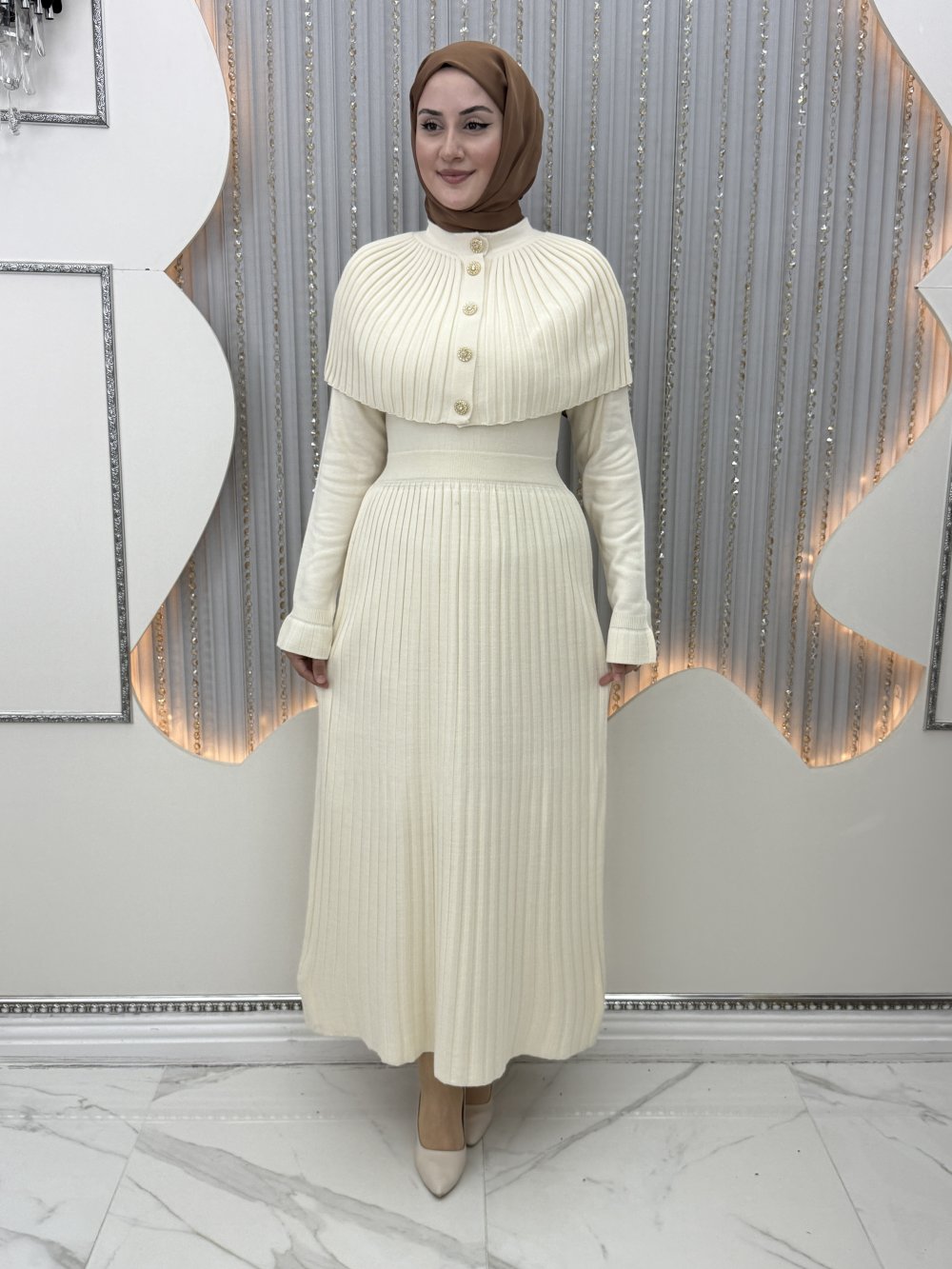 Sümbül Triko Elbise Krem