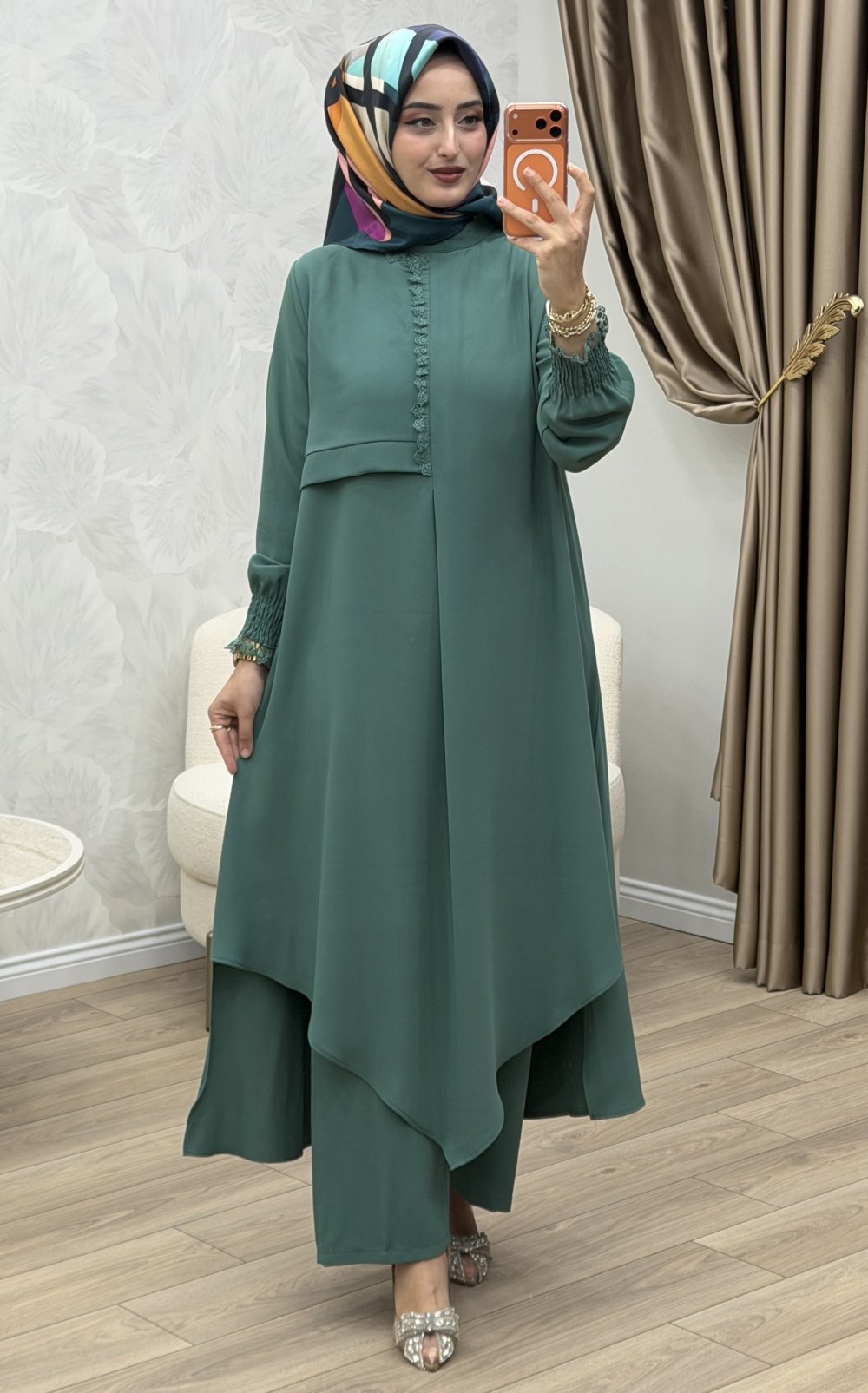 Tülin Takım,hem iş hem de günlük hayatınızda rahatlıkla tercih edebileceğiniz çok yönlü bir parçadır. Şıklığı konforla buluşturan bu tasarım, sezonun en gözde modellerinden biri olacak