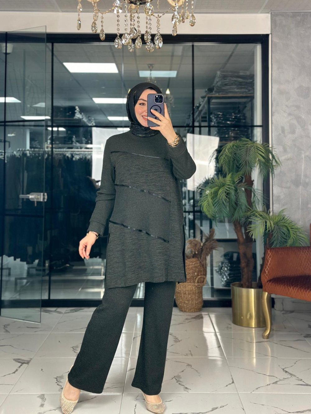 Kumaşı likralı örme kumaştır. Pantolon beli lastiklidir.