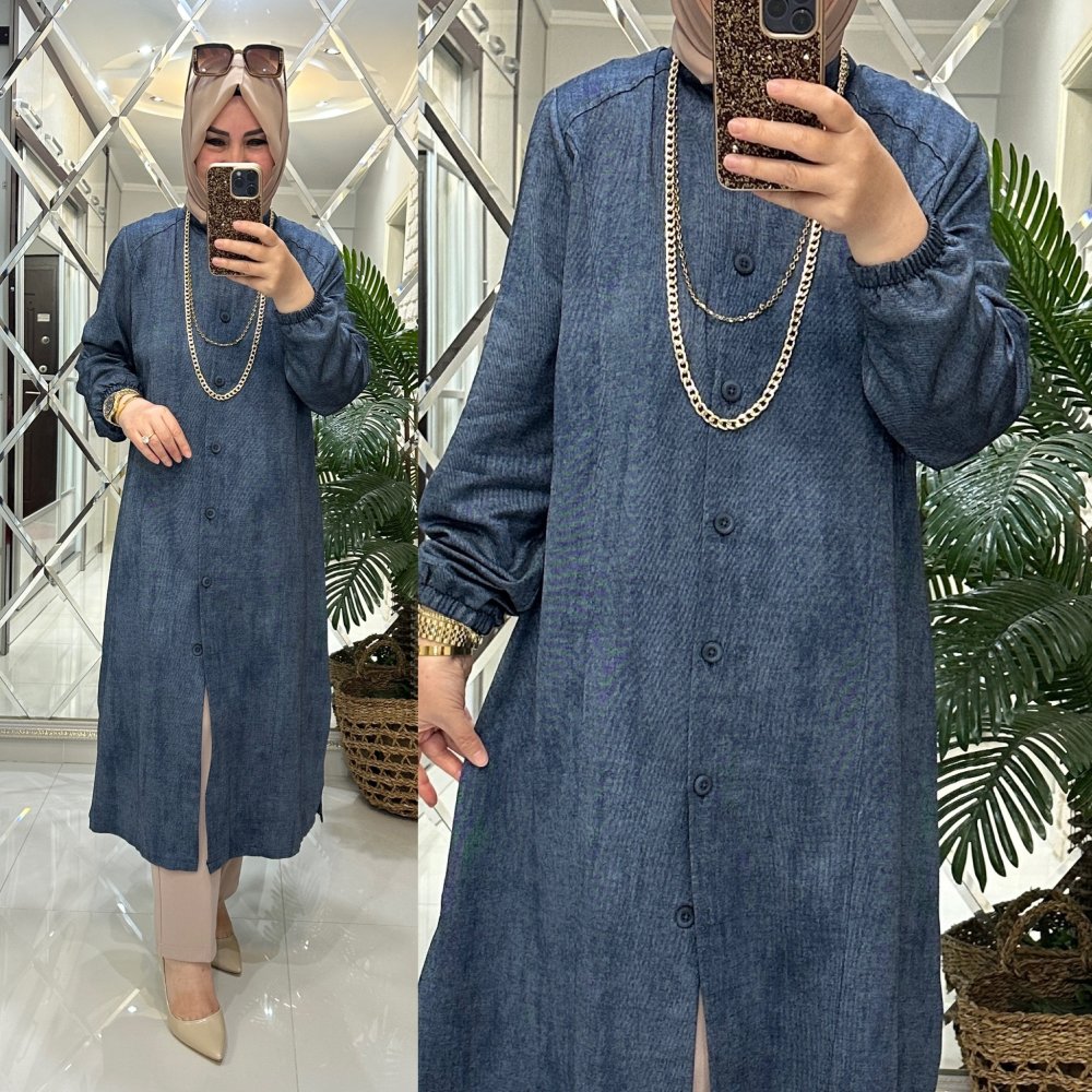 -Kolları lastikli, yakası hakim yaka, önden düğmeli