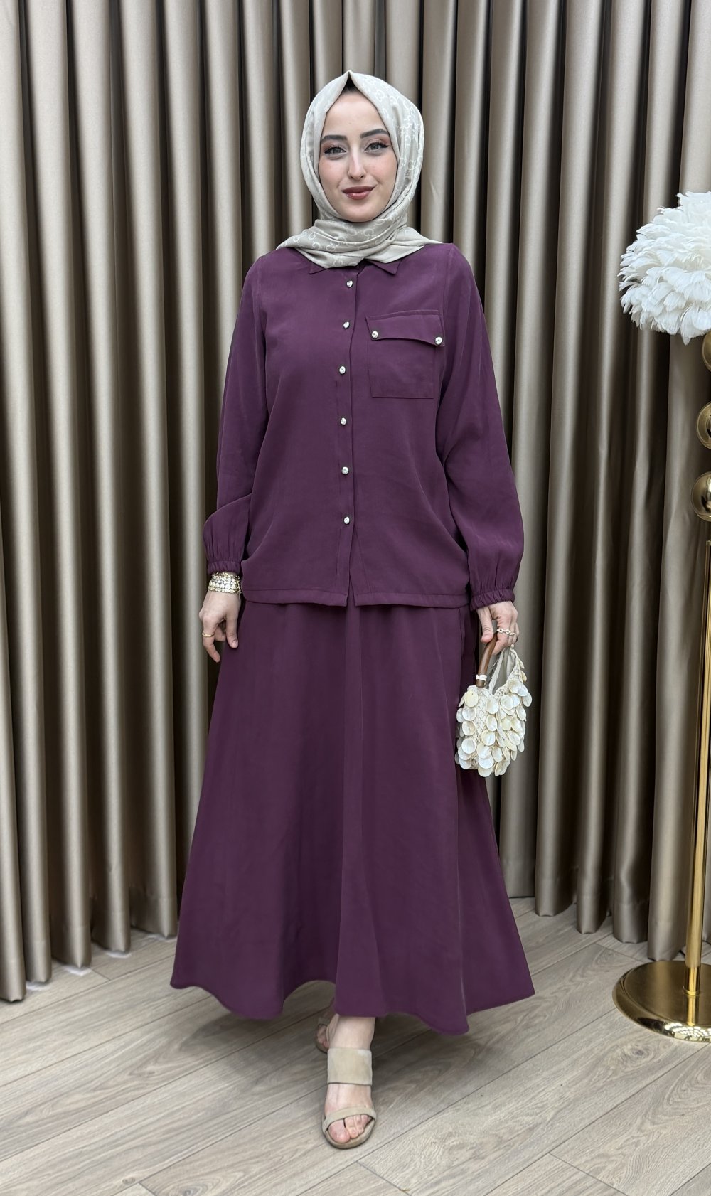 Rahatlık ve şıklığı bir araya getiren Verda Etek Takım,sade ama zarif duruşuyla günlük kombinlerinizi güçlendiriyor. Yumuşak kumaşı sayesinde gün boyu konfor sunarken, modern kesimiyle stil sahibi bir görünüm yaratır.