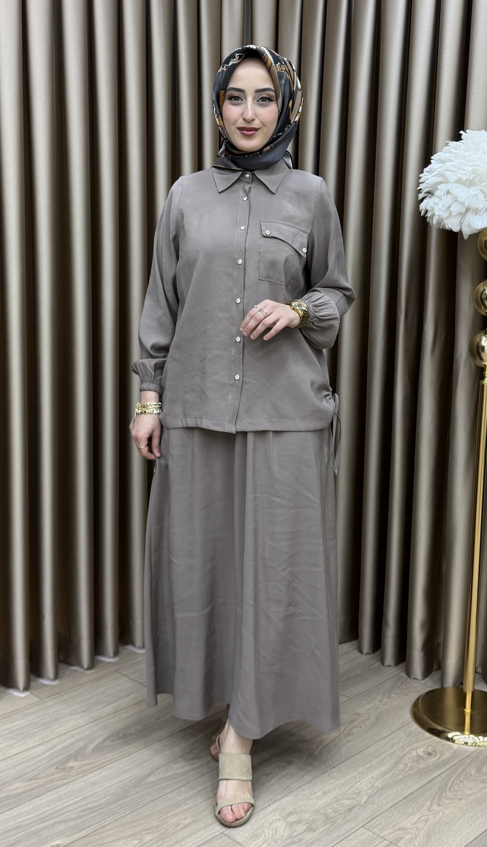 Rahatlık ve şıklığı bir araya getiren Verda Etek Takım,sade ama zarif duruşuyla günlük kombinlerinizi güçlendiriyor. Yumuşak kumaşı sayesinde gün boyu konfor sunarken, modern kesimiyle stil sahibi bir görünüm yaratır.