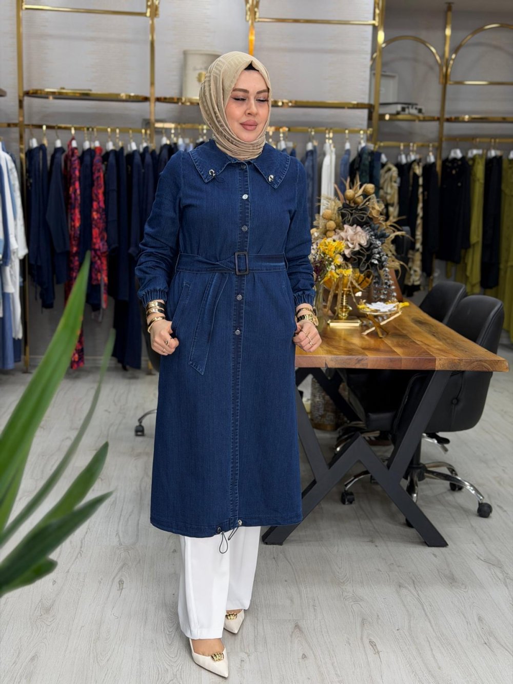 Kumaşı tensel kottur. Önü düğmelidir. Cep mevcuttur. En alt kısımda