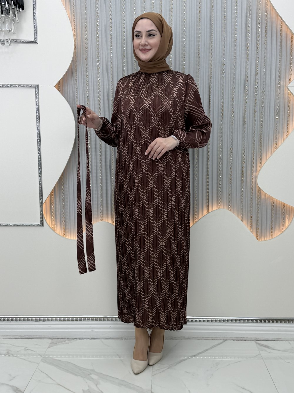 Yaldız Elbise Kahverengi