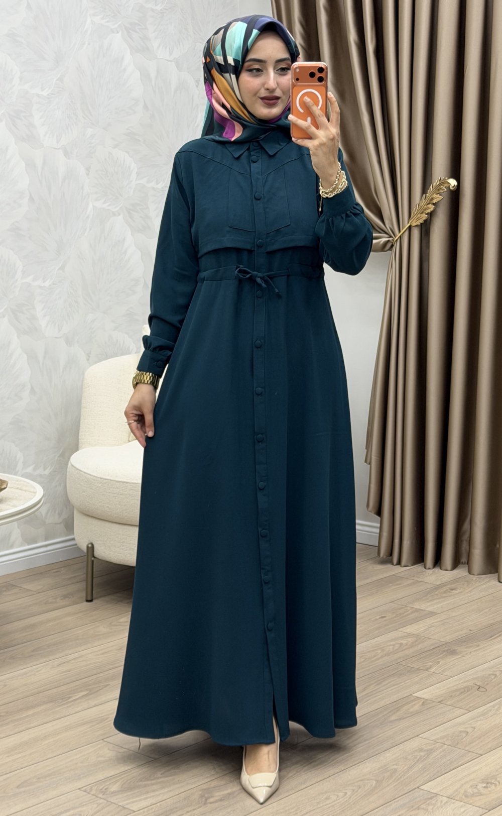 Yüsra Elbise Petrol Mavisi