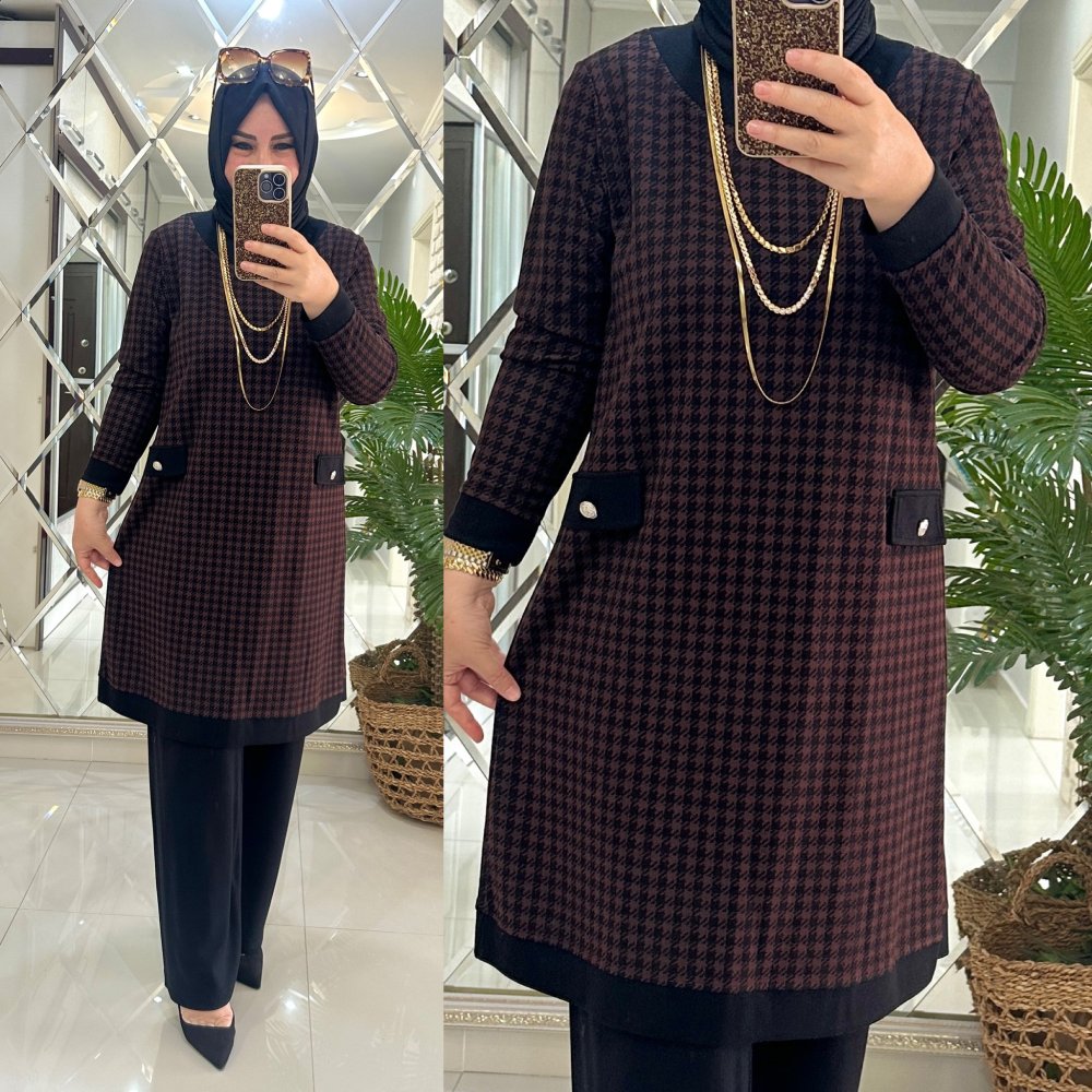 -Yüksek kalite örme/krep penye kumaş, esnek likralı yumuşak , kazayağı desenli