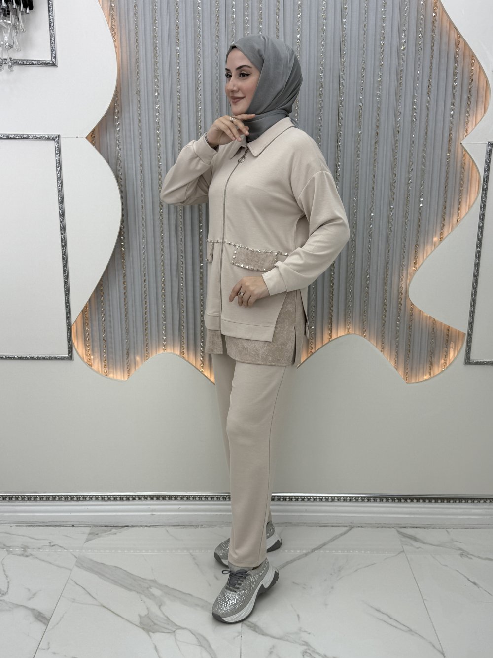 Zımba Pantolonlu Takım Krem